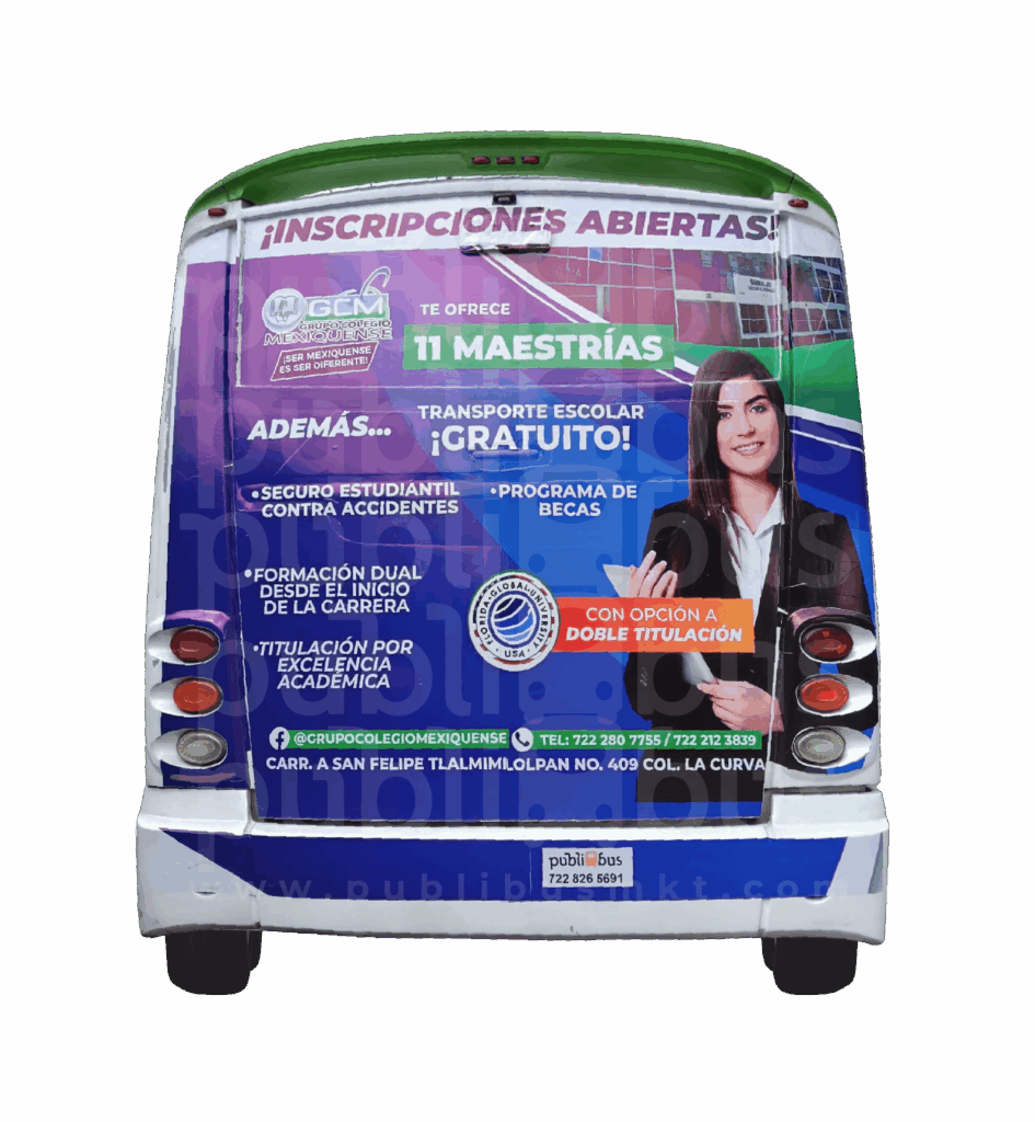 En este costado su marca impacta a peatones, automovilistas y transporte público que circula en sentido paralelo o se detiene en los semáforos. Al igual que el lado izquierdo, el lateral derecho genera gran visibilidad, convirtiéndose en una vitrina móvil que multiplica el alcance de su campaña en distintas zonas de la ciudad.